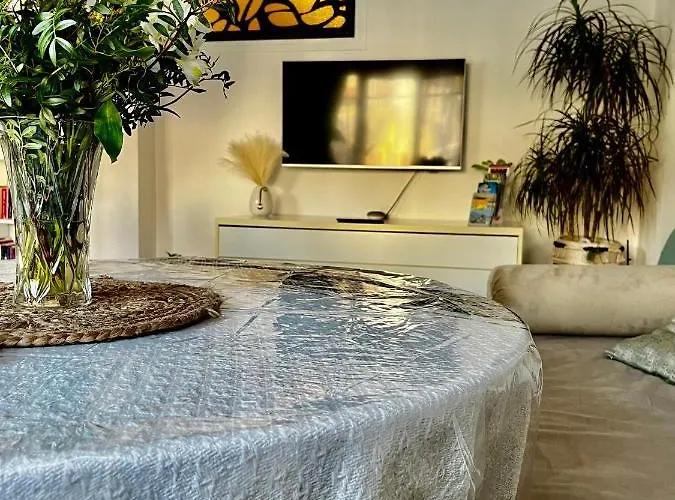 **Accommodation** at La Douceur Nicoise includes a comfortably appointed living area, perfect for relaxation after a day of exploring. The apartment boasts a flat-screen TV and an inviting seating area, allowing guests to unwind in style. Additionally, the presence of a washing machine adds to the convenience, making it an ideal choice for longer stays or those traveling with family.